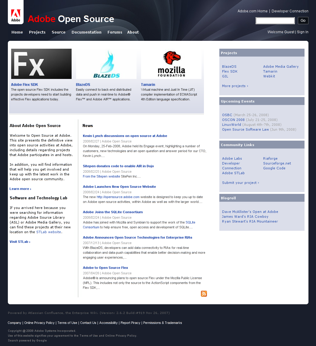 It’s been a while since I’ve picked apart a design implementation but Adobe’s Open Source site shocked me so much that I’m going to open up the floodgates on these guys. There are just so many issues and webdesign faux-pas lurking around it.