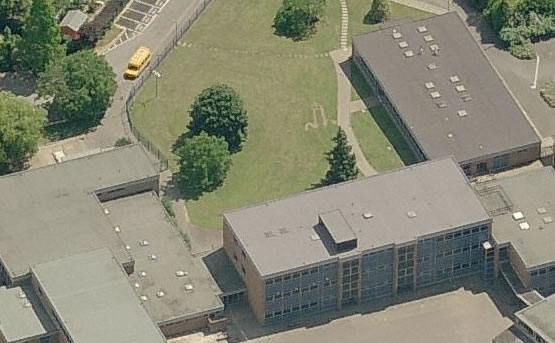 Having a glance at Becky’s LJ (via John’s) today, I saw a link to a report from the Guardian: Schoolyard penis seen from space. Their picture is a little fuzzy so I took another from MS Live Maps: